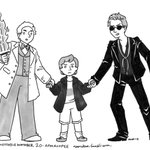 “Brother Francis” and “Nanny Ashtoreth” out in the garden with their young charge for #IneffableInktober 13, Godfathers. Who let Aziraphale be a gardener?? #goodomens #inktober2019 (backlog of inktobers incoming!)