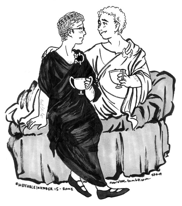 #IneffableInktober 15 is Rome. Referenced the poses from a couple guys sharing a Moment in a Pompeiian banquet fresco. #goodomens #inktober2019