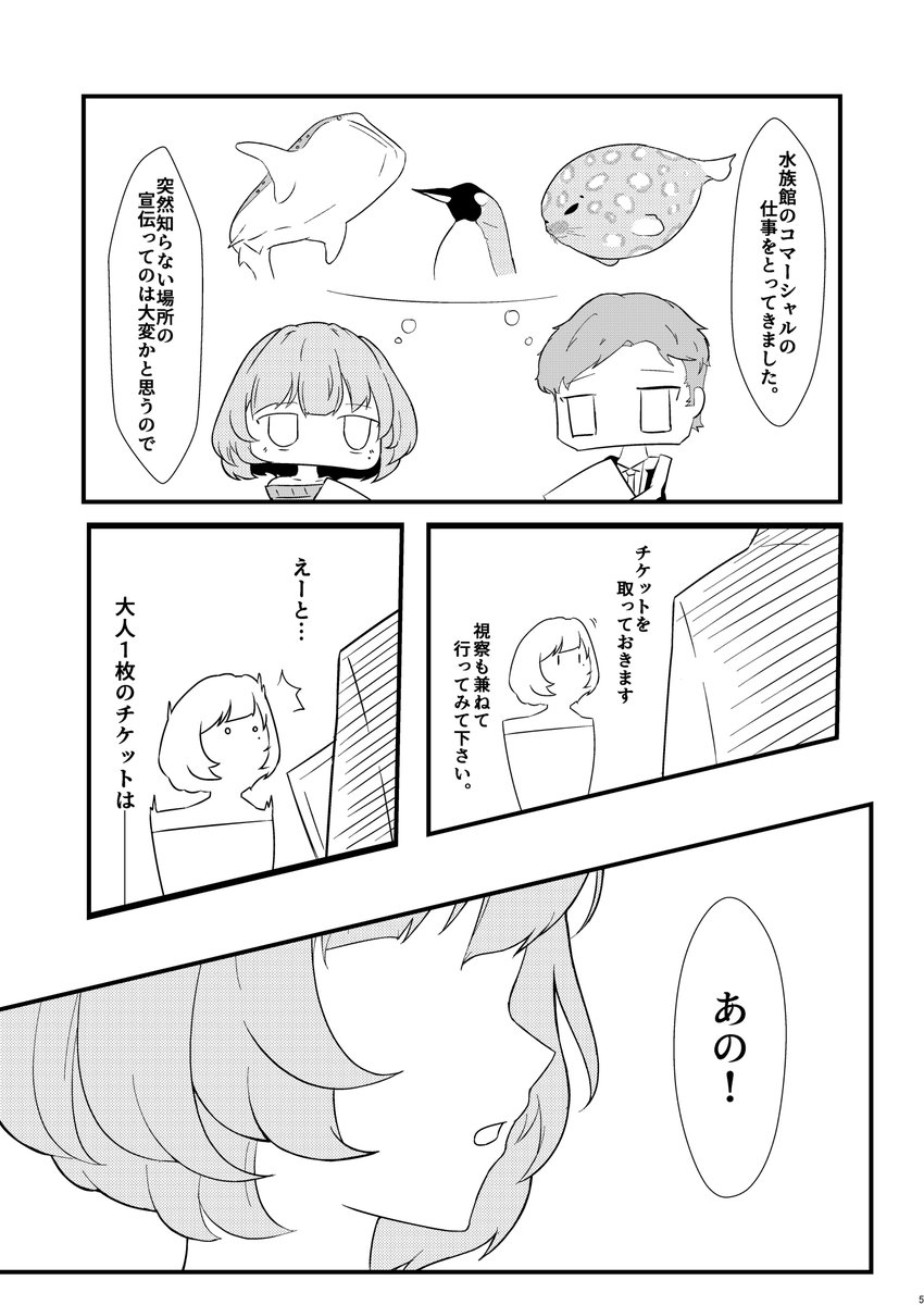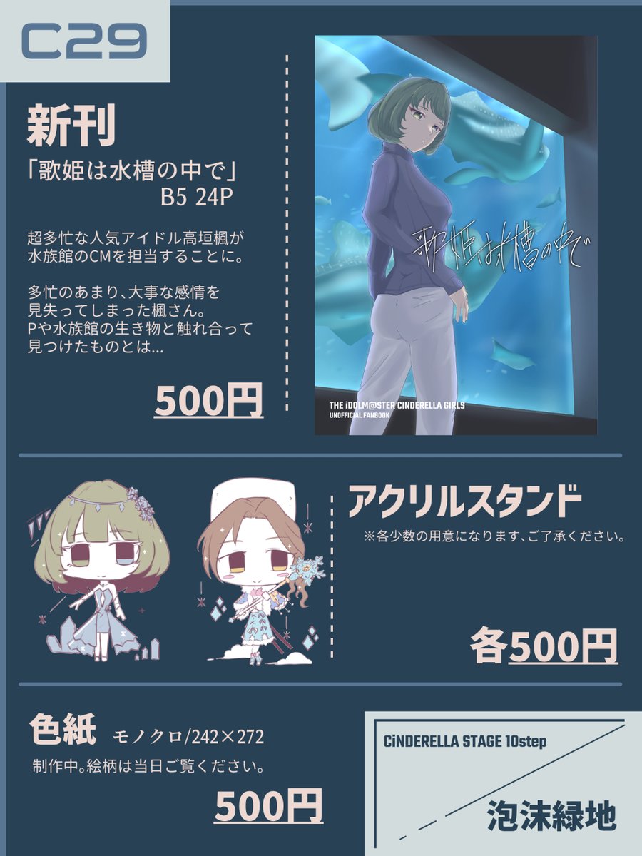 なんとか脱稿できました! 新刊「歌姫は水槽の中でⅡ」サンプル(1/2) B5/18P/500円 楓さんと川島さんの初共演がテーマのお話です。 ラッコ描くのにめちゃめちゃ苦労したのでぜひ見てください。 シンステ11STEP、当日はぜひ【け-42】に! #シンステ #cin_stage