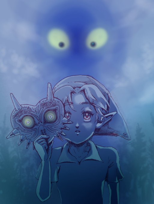 Day12:NIGHT 構図を考えながら、ムジュラの仮面をもう一度遊びたくてウズウズしてきました👀✨Switchで遊べるようになるのが楽しみ! 本業が忙しいので、色は気分が乗ったらそのうち塗ります💪 #linktober2021 #linktober #ムジュラの仮面 #majorasmask