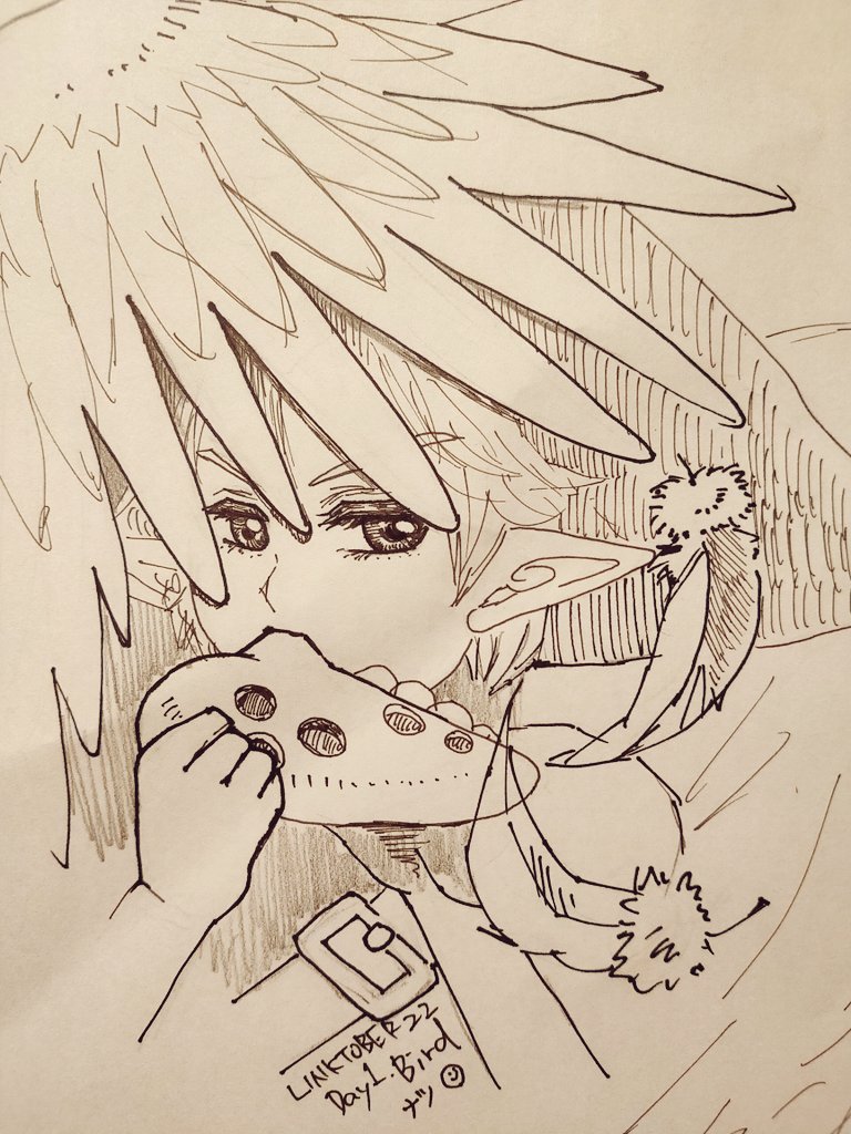 Day1:BIRD クロックタウンで大翼の歌を奏でたムジュリンを街の人が目撃して目が合ってしまい、ドキッとする瞬間。 #Linktober #Linktober2022 今年はスプラ3に夢中なのであんまり参加できないかもだけど大好きなイベントなので!頑張る!