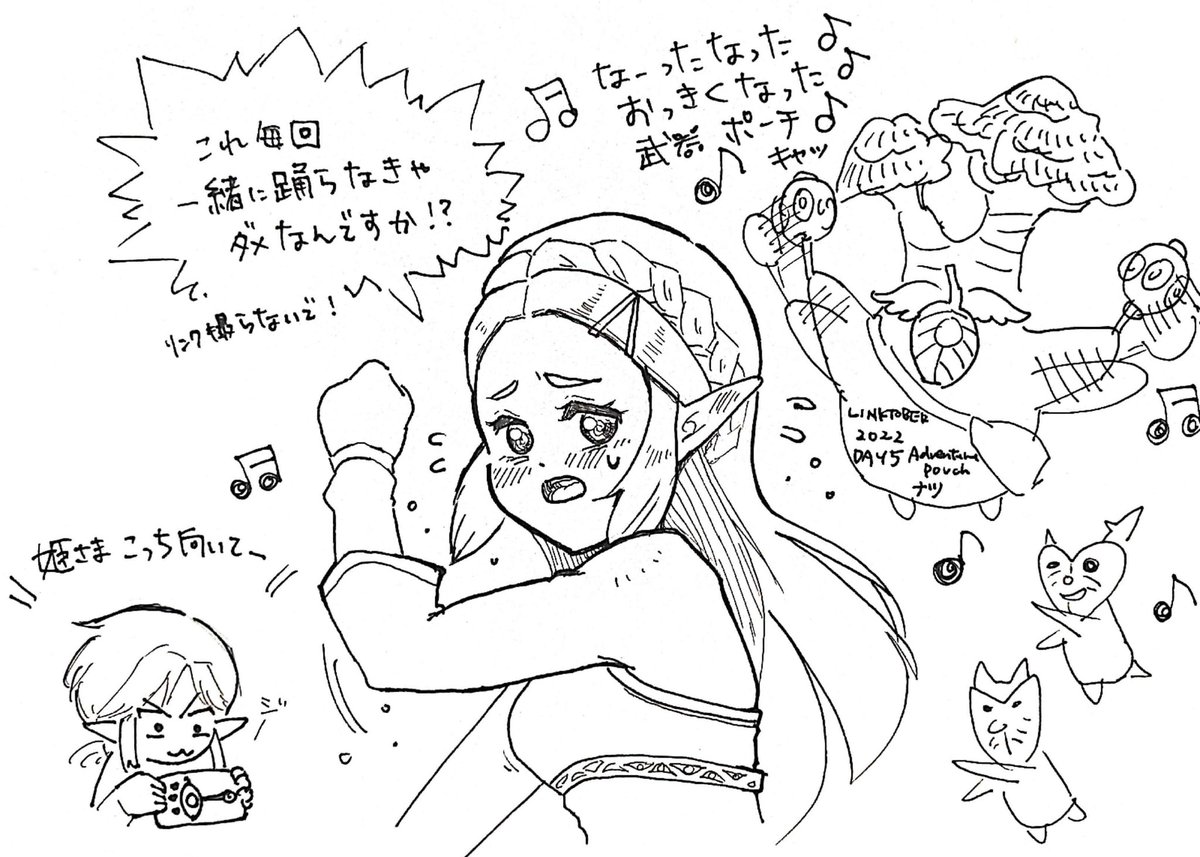 Day5:Adventure pouch ギリギリ遅刻や…! クリア後にゼルダ姫も一緒にポックリンと踊ってほしいな!恥じらいながら! キーング♪キーング♪キングッゲーイナー♪メタルーオーバーマン、キーングゲイナーー♪ #Linktober2022 #linktober