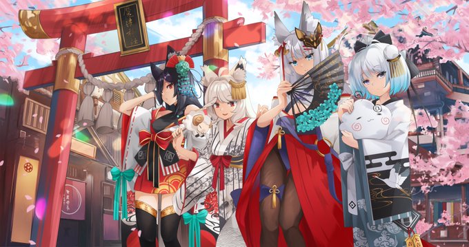 果然一次畫四位腦容量負荷不了(已過載 新年和服神社 #雲際線 #狐嶽百景 #瑪麗的沙龍 #鈴蘭的寫生繪本LA #UbyeSkyArt