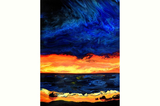 I went more abstract on this seascape pour painting, in complementary blue and orange. 14x18 on canvas. Original and prints at zenbreeze.com/products/seasc… #seascape #ocean #wallart #wallartforsale #pourpainting #artistsontwitter