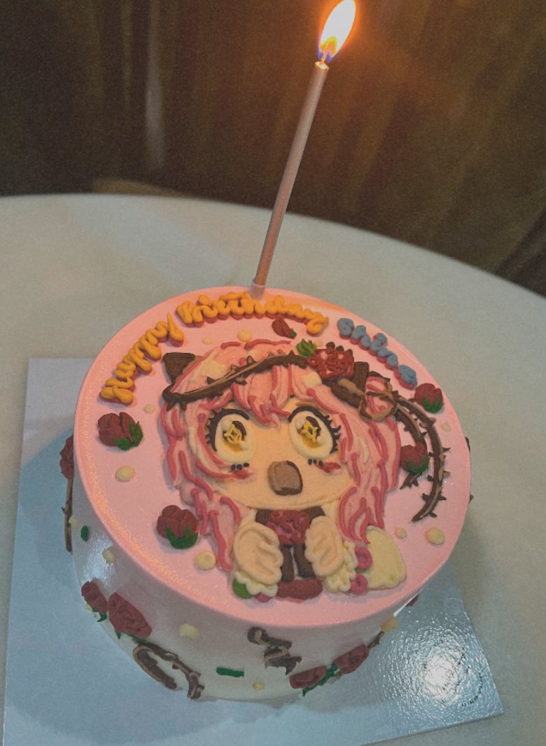 my birthday cake from my sister!!!!!!!!!!!! 😭❤️🌹 i wish the anniversary standee could be here too but for now hehe im so happy #GalleryOfRoses