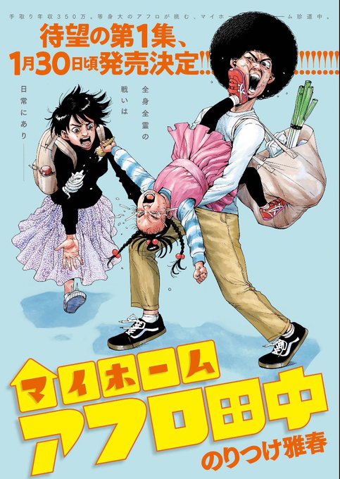 来週、月曜日のスピリッツは マイホームアフロ田中 巻頭カラーで載っています。 そして1巻の発売日です。 よろしくお願いいたします。