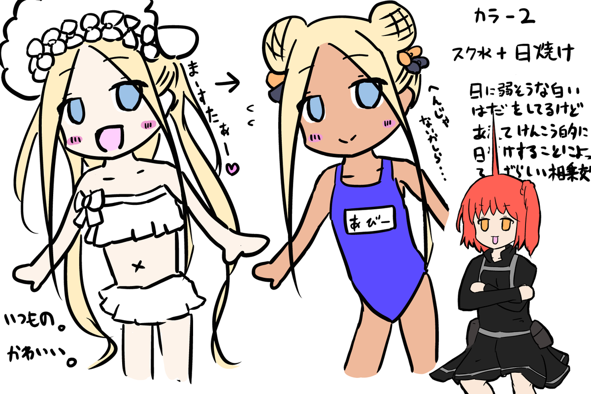 #夏が終わりそうだし今年描いた水着絵を貼ろう #FGO _人人人人人人人人人人人_ > スク水日焼け跡 < > 再臨3アビーちゃん <  ̄Y^Y^Y^Y^Y^Y^Y^Y^Y^Y ̄