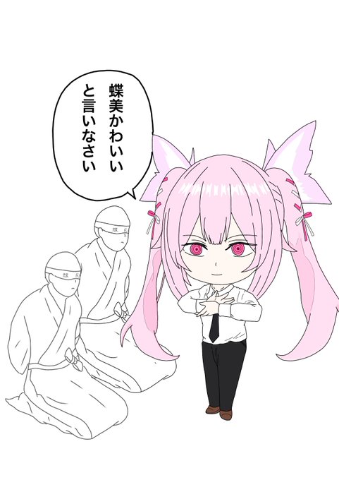 34 138 とある人アイディアより!! マキマさん風ちよちゃん〜😊 生贄の蝶民2人はこの後どうなるのやら…🫣 #千代浦蝶美 #あおぎり高校美術部 23/04/04 23:19