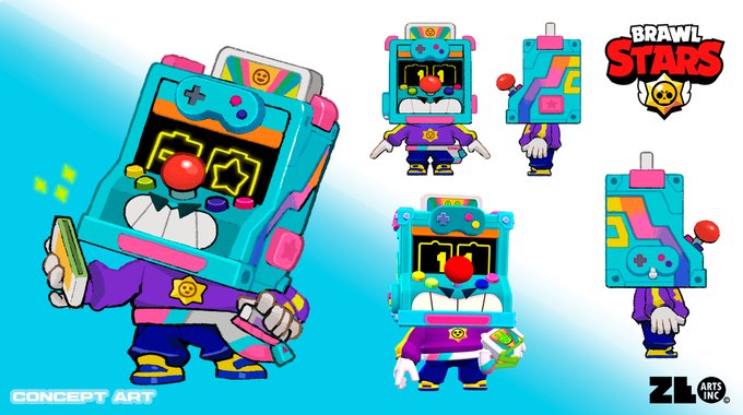 My teenage years were spent in arcades, when I designed this Griff Skin I also wanted it to blow cartridges like we did in the past with snes, sega and 64. #brawlstars