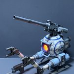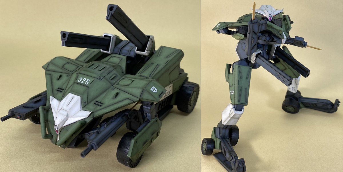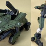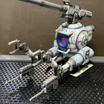 #今月作ったプラモ晒そうぜ #境界戦機 #境界戦機プラモ製作祭 コンテスト用。バンイップ・クローラーと命名。駐機状態から更に平らにしたかった。車輌らしいバランスになったと思う。変形後に砲が上面でなく腹に行くのが気に入っている。スジボリ研出しに挑戦。成形色仕上げなのに部品を壊して参った
