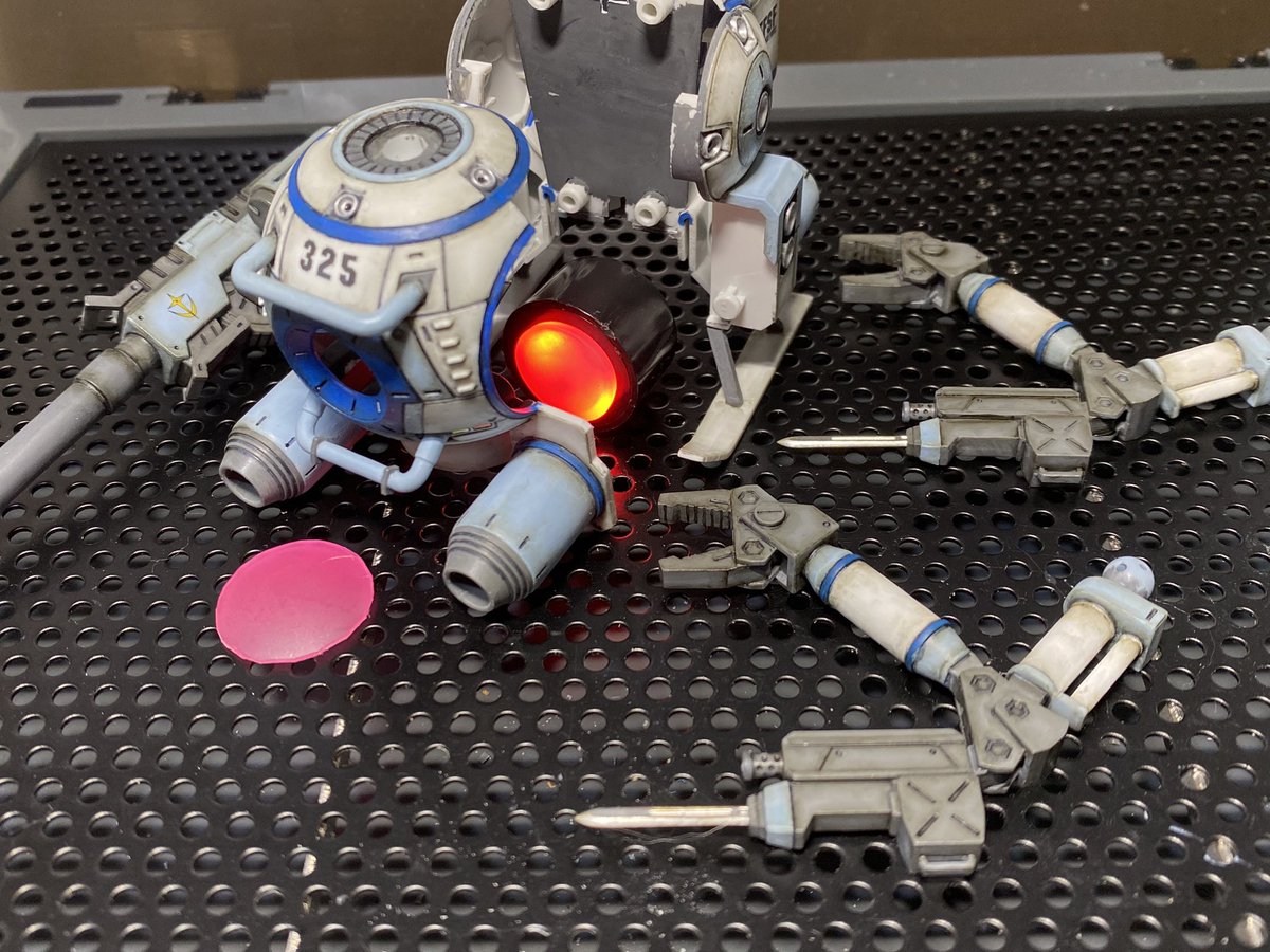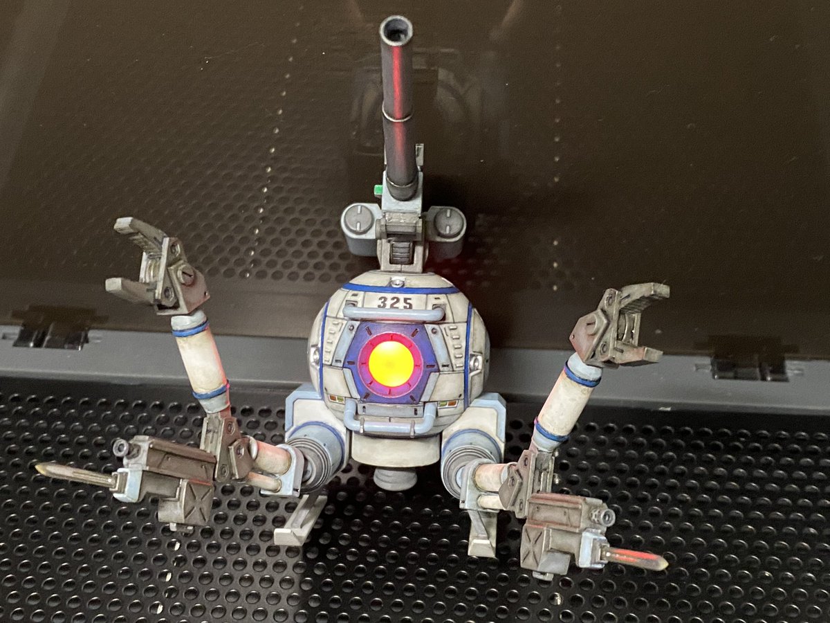 もう少し手を入れたいけど時間切れ。 8年積んだサンダーボルト版ボールを、アクリジョン筆塗り挑戦の実験台に。無臭で全塗装できるのは楽しいけどクッソ難しかったです。課題山積。上からコピック、あと百均LEDで雑に電飾。 #ガンプラ #今月作ったプラモ晒そうぜ