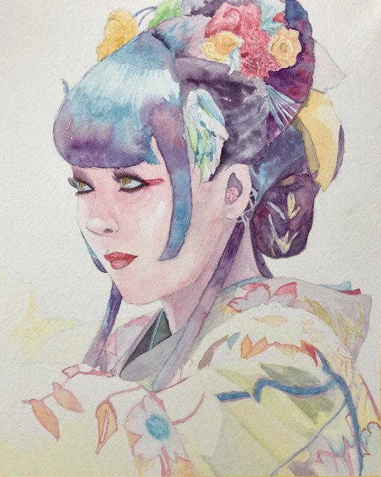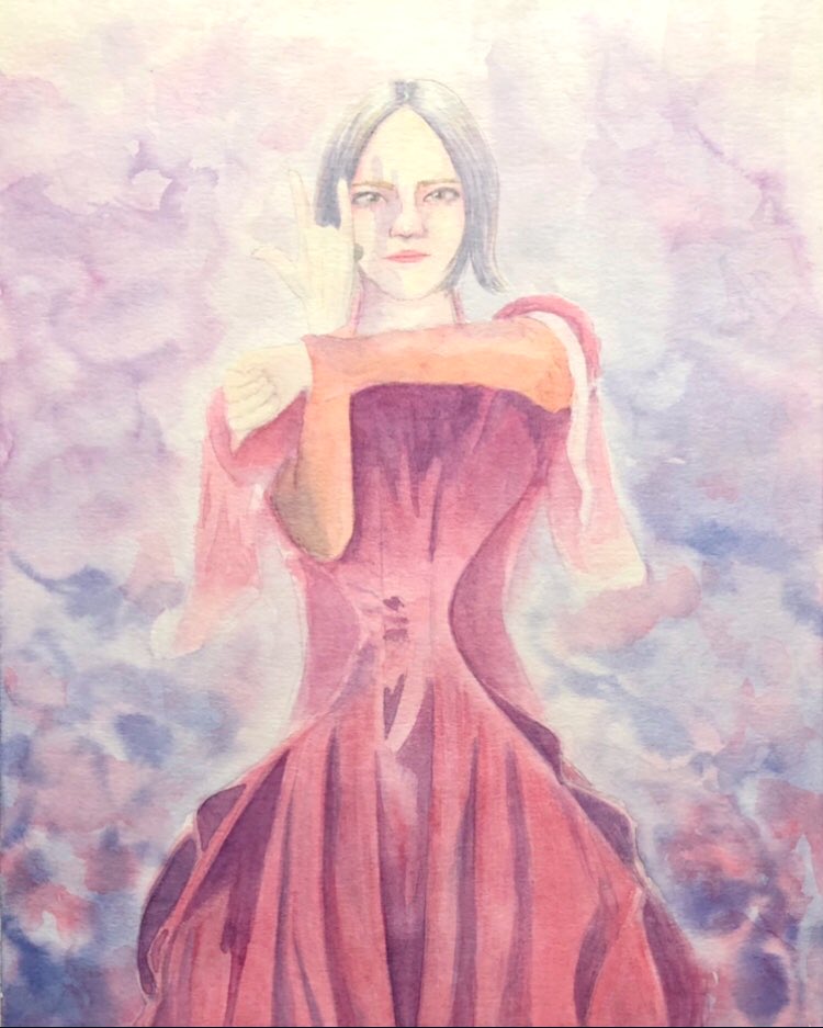 Perfume LIVE polygon waveから、のっちのキメポーズ! 左手はLOVEの意味かな? カッコ良さに磨きがかかってますね〜 普段使ってる水彩紙と違う物を使ってみたら、色味がイメージと違う感じに… #prfm #perfume_fanart #水彩画