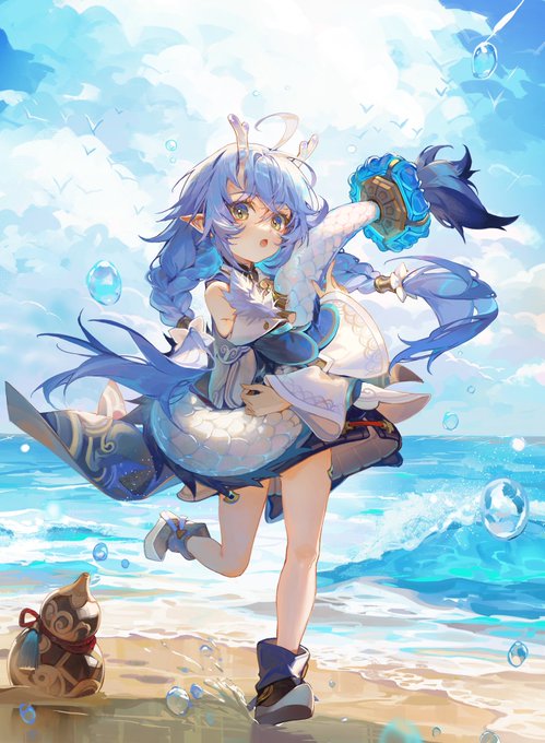 Bailu wanna enjoy the sea breeze, but wet tail is a no no! #honkaistarrail #starrail #スターレイル