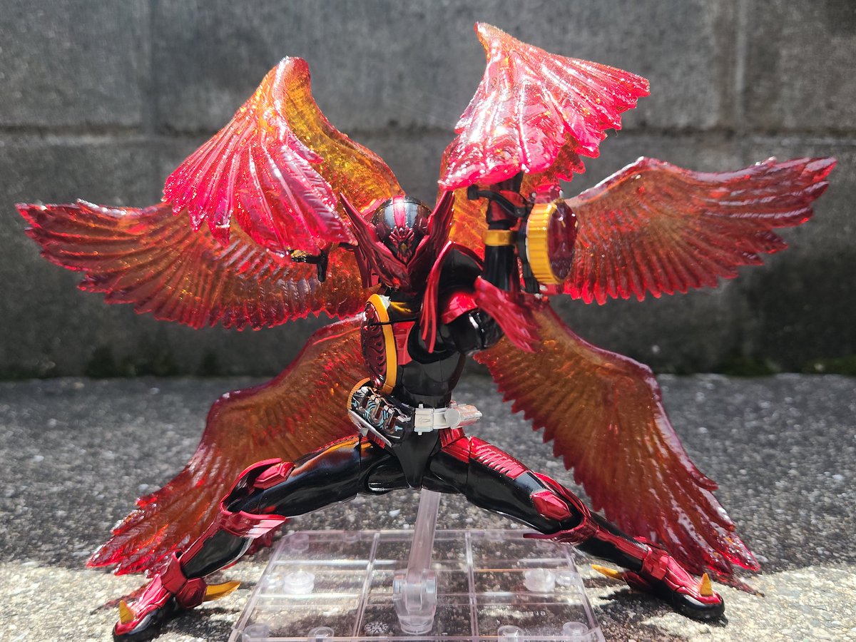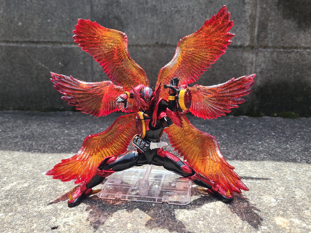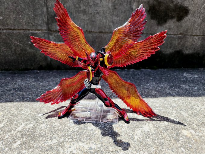 真骨彫フィギュアーツ 仮面ライダーオーズ タジャドルコンボ ラストブレイズver 再現用翼エフェクトを作ってみました。 針金とソフトレジンで作ったので曲げたり等の表情もつけるようにしてみました。 #ニチアサフィギュア改造部