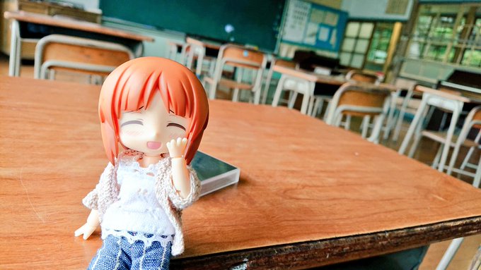5/21 お題【がっこう】(既出) この机とか懐かしいですよね(*´ω`*)✨ ※大子町上岡小学校にて #深夜のねんどろ撮影60分一本勝負 #ねんどろいどどーる #西住みほ #garupan