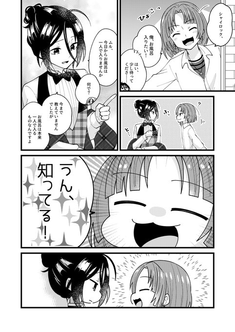 44 193 推しカプはとりあえず一緒にお風呂に入って欲しいので情操教育期のムルシャイ描きました。 20/12/23 19:40