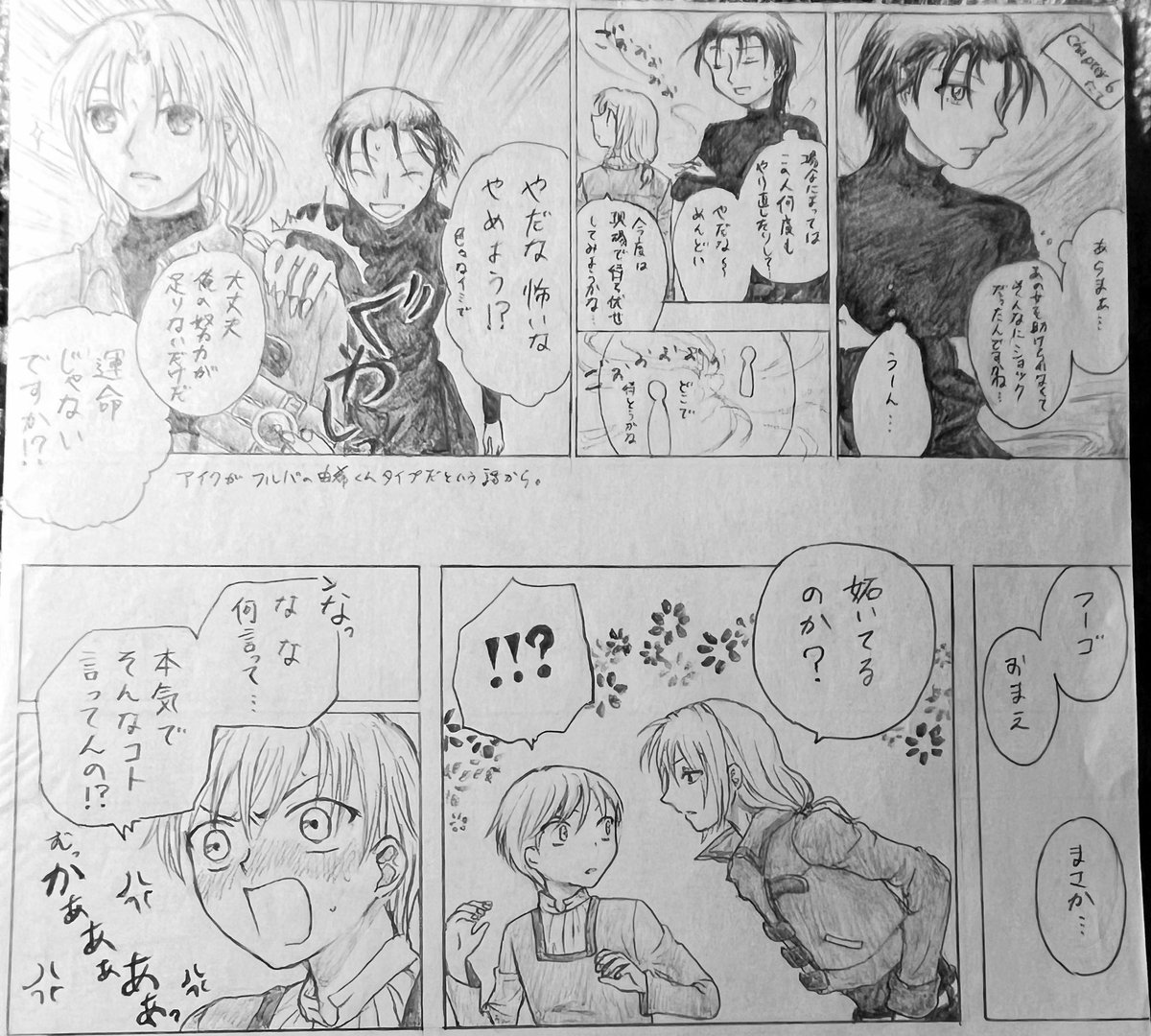 #原作を隣に貼らなくても何のパロディか気づいて (シャドメモ記念日のネタ探しに)昔の絵を漁っていたらこのタグできるのでは?と思ったので並べてしまったのであった(紙の表裏にごりごり描いてるので見にくいけど…)