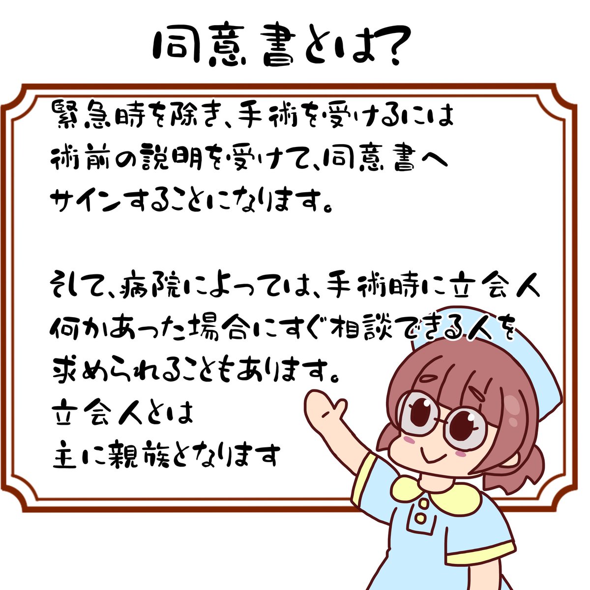 第13話『手術同意書』 今は第三者の同意とサインがあれば良いみたいですね。 私が看護師をしていた2000年代前半はまだまだ家族の同意が必要な時代でした。 次回に続きます!! #コミックエッセイ #漫画が読めるハッシュタグ