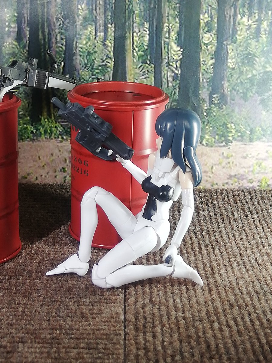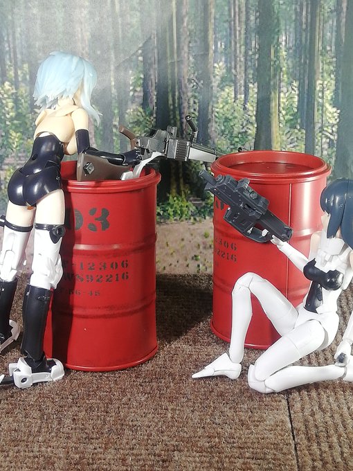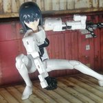 0 9 100均で買ったのを使ってサバゲー風に。 だいぶ身体出てるんでヒット取られる姿勢になってしまった(汗) #メガミデバイス 21/01/17 22:27