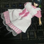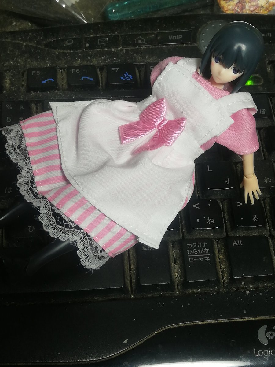 100均に売ってた人形の服を着せてみた。 サイズ厳しいなぁ……仕立て直しする裁縫スキル無いし、他をあたるか……。 #メガミデバイス