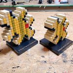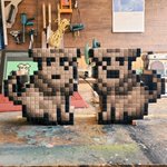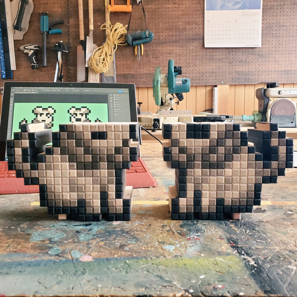 新作ドット絵彫刻完成。 阿吽の狛犬がモチーフです。 Pixel Art Sculpture ”a-hūṃ” zerotaro.base.shop/items/76610567 #BASEec #ドット絵 #Pixelart #彫刻 #sculpture