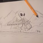 #inktober2022 day 14: empty Extra pic of a pen thief #inktober #illustration #traditionalart #tattoo #conceptart #empty #alien #ufo #hitchhiking #gas