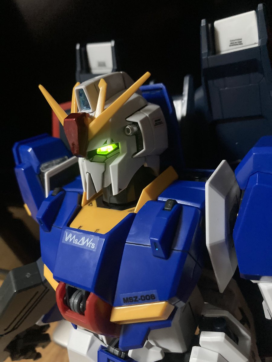 はい! 細部までうるさくなり過ぎないようにステッカー貼って完成!! トップコートは塗装してないし、電飾あって怖いからしない! あとからでもできるしね #ガンプラ #ガンプラ初心者 #ガンプラの画像を貼るとRTされると聞いて #ガンプラは自由だ #ゼータガンダム