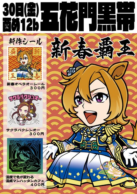 22 45 冬コミ頒布シールその1 新春オペラオー 文字はやま先生(@komaguchi)にお願いしました 22/12/24 14:55