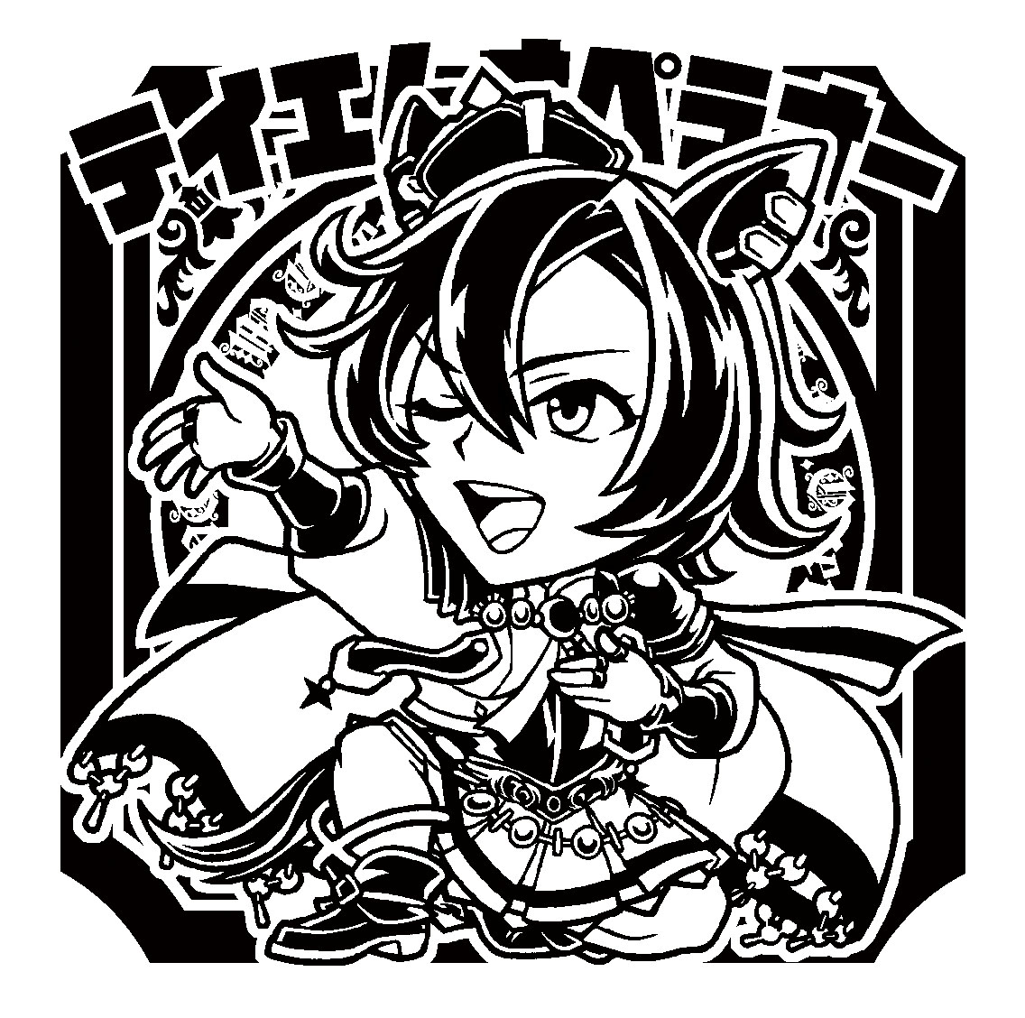冬コミ頒布シールその1 新春オペラオー 文字はやま先生(@komaguchi)にお願いしました