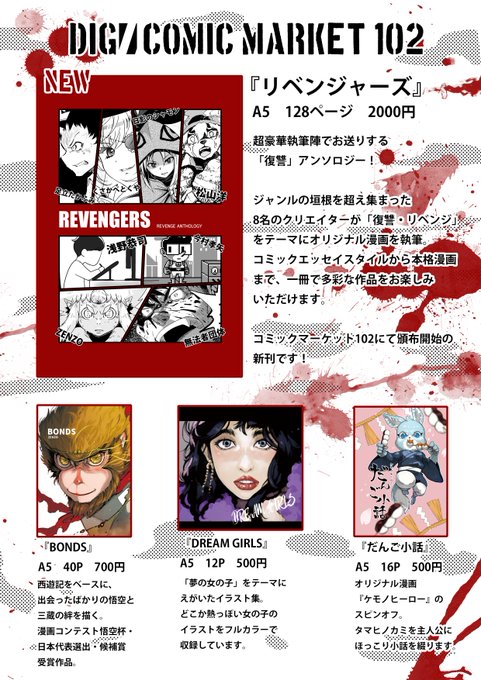 #C102 にて頒布予定の復讐アンソロジー『リベンジャーズ』!豪華メンバーがオリジナルの復讐漫画を描き下ろし✨ 二日目 西ホールひ08b 「DIG」にてお待ちしております! #コミックマーケット102 #漫画が読めるハッシュタグ #くまのわたし #アンソロジー #メンバーの半数がウィキペディアに載ってる