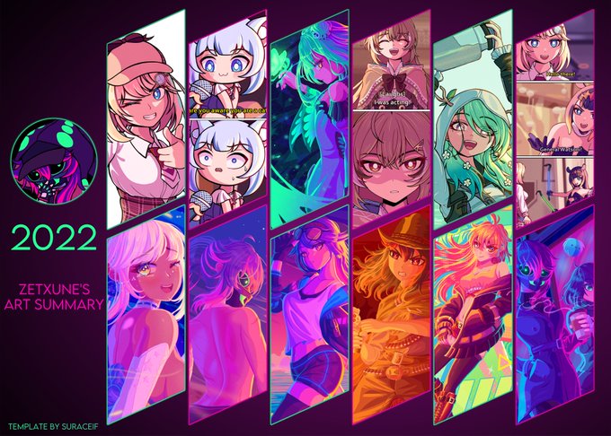 My art summary for 2022 This is my 5th year of doing this so I guess that's a nice streak I also found it amusing that this year was split evenly between mostly memes in the first half and illustrations in the second half #Artsummary2022 #2022年の絵を振り返る