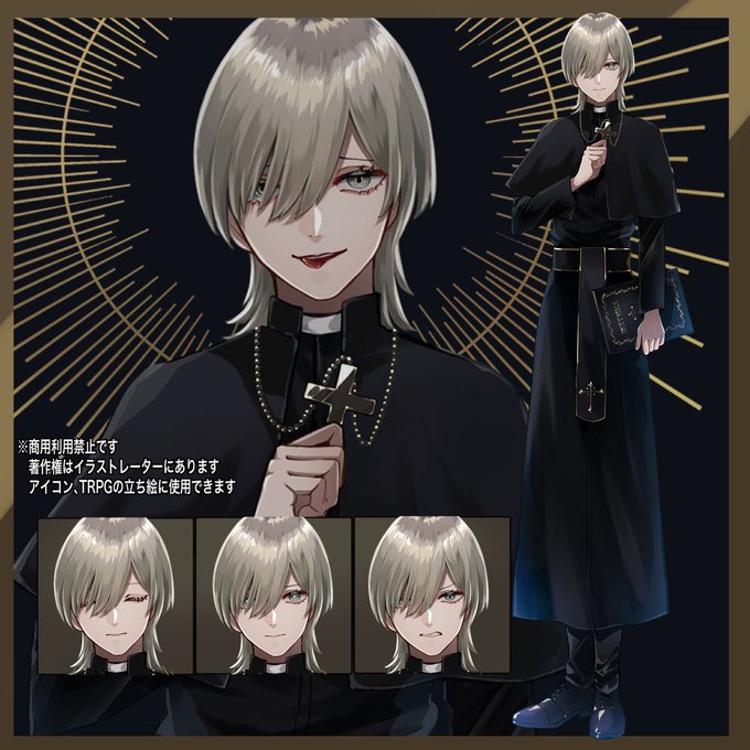 39 32 🎍お正月立ち絵プレゼント 2人目 神父風 (全身 表情全4種 背景透過) *フォロワーさん限定 *参加方法はこのツイートをRT *鍵アカは対象外です *期間は1月3日まで 22/01/01 12:24