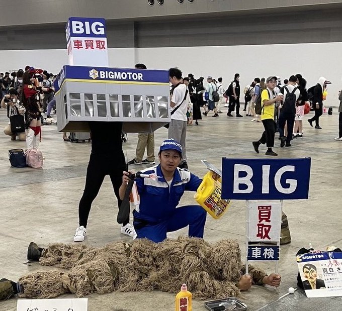 786 2596 コミケではビッグモーターの店舗のコスプレをしました お疲れ様でした! 副社長:@Innocentius_123 店舗:@zgokzogok 街路樹:@ba_ro_kun 社員:@252531043 #C102 #C102コスプレ 23/08/13 20:32