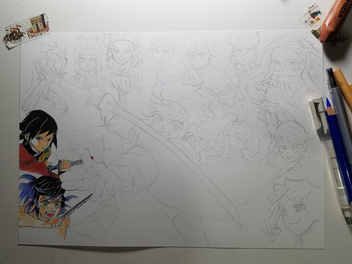 もうすぐ描き終わってしまう…。 #鬼滅の刃 #イラスト #色鉛筆 #色鉛筆画