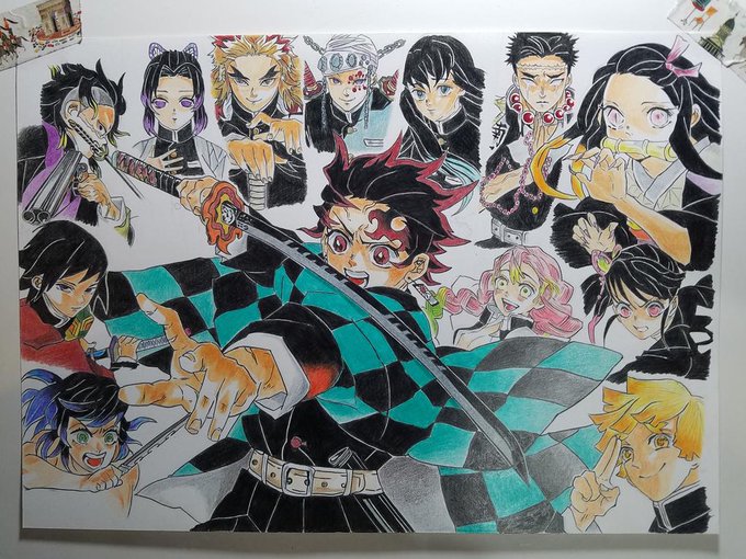完成。 #鬼滅の刃 #お絵描き #色鉛筆画