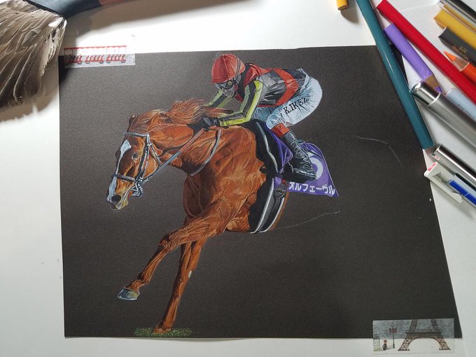 画用紙をつなぎ合わせて完成w #オルフェーヴル #競馬 #JRA #色鉛筆 #色鉛筆画 #お絵描き #おうち時間 #コロナ
