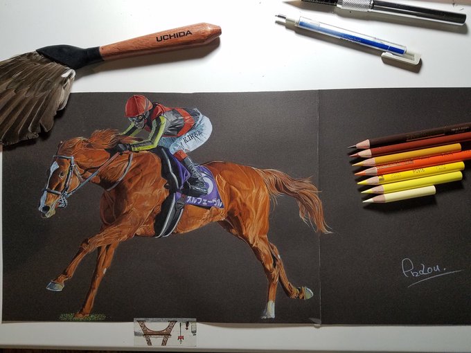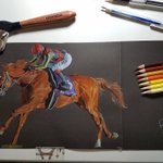 金色の暴君。 #お絵描き #色鉛筆 #色鉛筆画 #オルフェーヴル #競馬 #JRA #池添謙一 #下半身はケンタウロスに貸し出し中 #巣ごもり #おうち時間