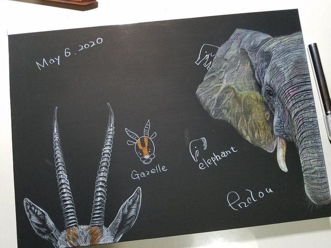 0 7 馬の次は象。象の次はガゼル。 #色鉛筆 #色鉛筆画 #象 #お絵描き #elephant #コロナ #おうち時間 20/05/04 23:55