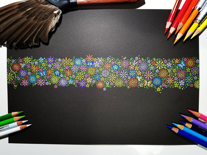 動物を隠して遊んでみた。 #色鉛筆 #色鉛筆画 #花 #Flowers #お絵描き #動物 #かくれんぼ
