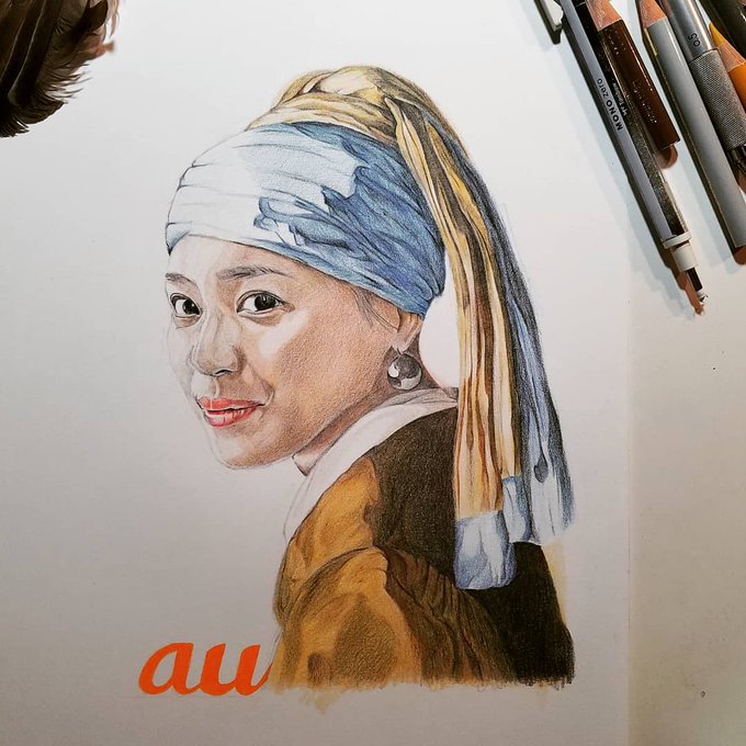 0 3 久しぶりのお絵描き投稿 「真珠の耳飾りの貯杉数子」 #au #貯杉数子 #西野七瀬 #乃木坂46 #色鉛筆画 #似顔絵 #お絵描き #フェルメール #真珠の耳飾りの少女 21/02/03 21:32