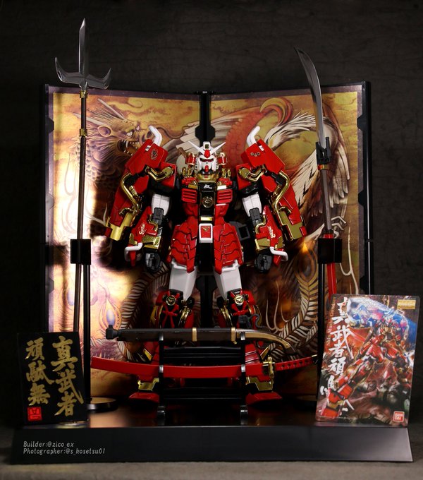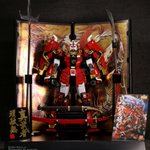 【MG 1/100 真武者玩駄無】 メッキはそのまま家に素組みで眠ってたのを仕上げたものです 写真を妻に撮ってもらいました 子供の日の五月人形に丁度良いですねw #コジマ塾ガンダムウエハース祭