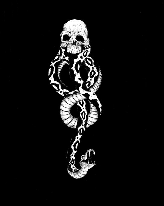 Dark Mark. PS: I'm selling prints of every single drawing! DM if you're interested!! #inktober #harrypotter #potterhead #potterlove #pottermore #ink #jakeparker #illustration #handmade #pigmamicron #drawing #snape #dumbledore #hermione #lordvoldemort #bellatrixlestrange