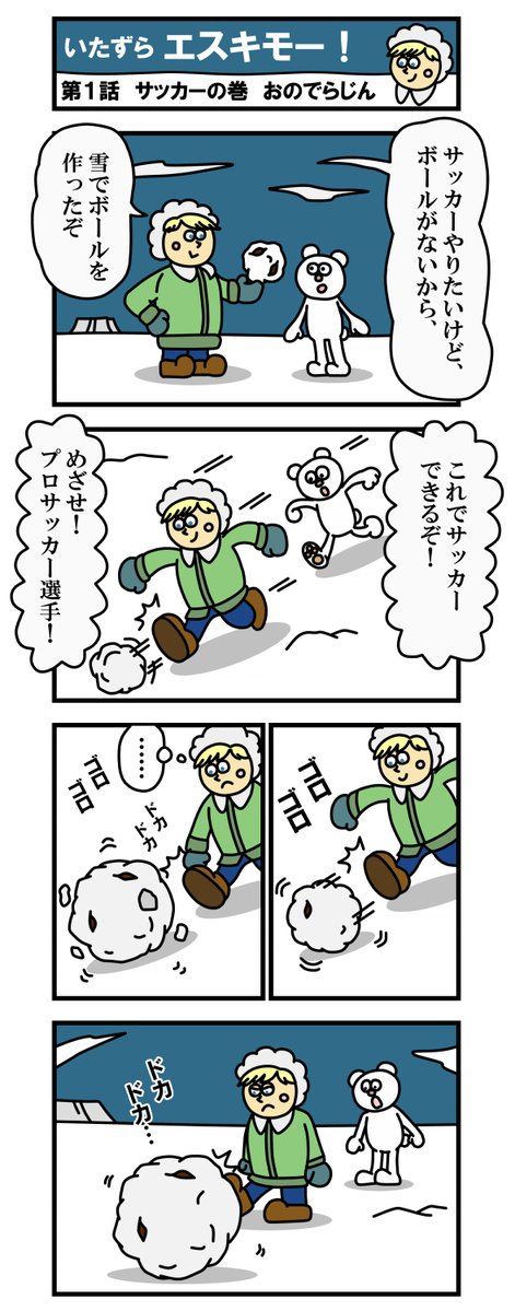 世界初!北極系ほのぼの漫画 「いたずらエスキモー!」・第1話・サッカーの巻! #漫画 #漫画家志望さんと繋がりたい #イラスト #イラスト好きな人とつながりたい #4コママンガ #絵描きさんと繋がりたい #漫画が読めるハッシュタグ