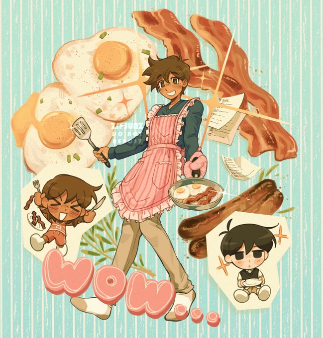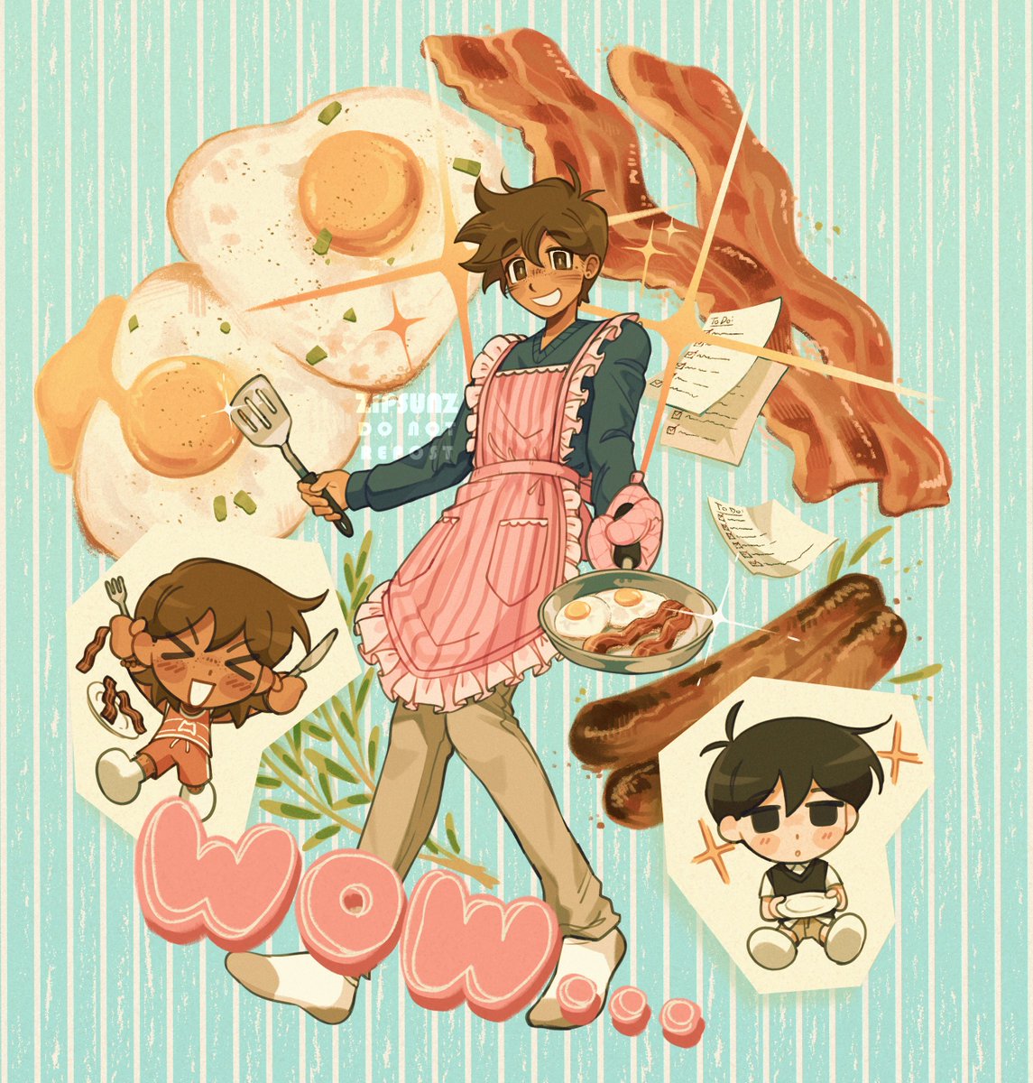 goooood morning, sunny! rise and shine! 🍳✨ "hanging with the boys" from june's art poll! [ #omori, #omorifanart, #omorihero ]