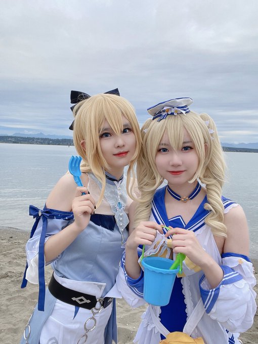 🏖️ Happy summer time!!!⛱ Finally shoot this set with my cute dear wifu!!! 海边姐妹花! 芭芭拉冲鸭 Thanks: Jean: me Barbara: @JennyXu1024 #genshinimpact #genshin #genshinimpactcosplay #genshinimpactbarbara #barbara #jean #genshinimpactjean #cosplay #cos #cosplaygirl #swimsuit