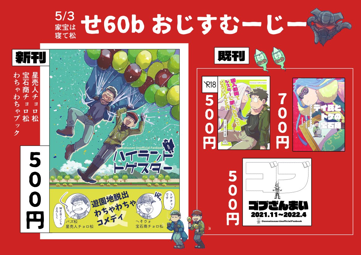 5/3東京家宝 おじすむーじー【せ60b】 新刊「ハイランドトゲスター」(A5/34P/500円) ぱず星売人3とへそ宝石商3のわちゃわちゃ漫画です。全文公開してますので、紙媒体で欲しい方向け。よしなに。 通販🐯ecs.toranoana.jp/joshi/ec/item/…