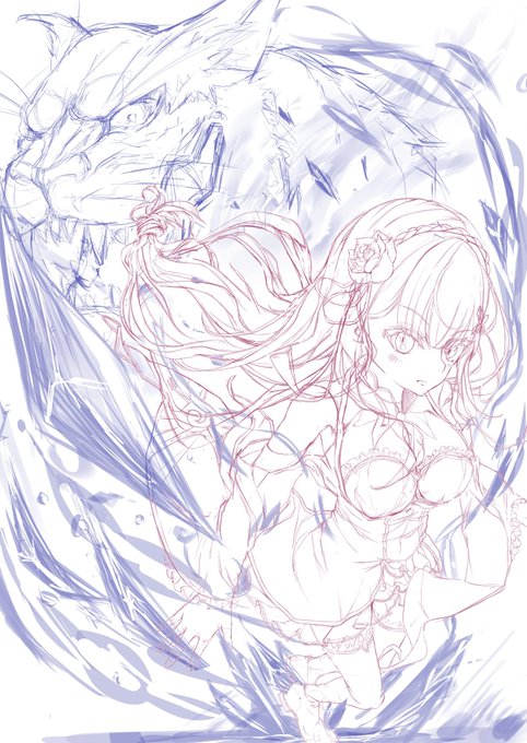 【wip】ラフ画 エミリア単体か、パックとか悩む。。。 #リゼロ #エミリア #イラスト