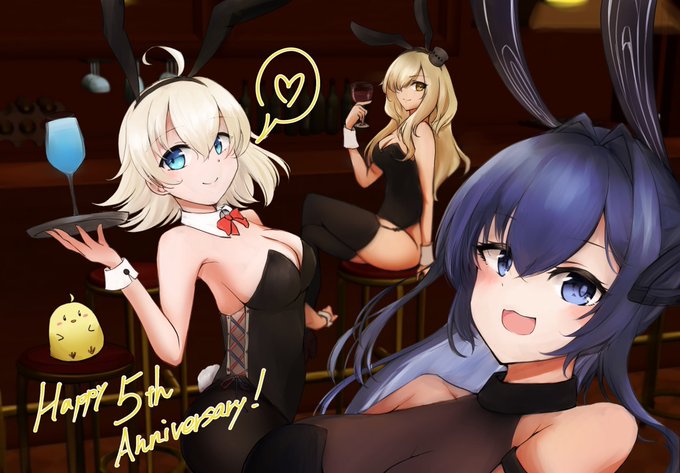 バニーなオクラホマちゃん、ネバダさん、ニュージャージーちゃんとお祝い🍾 5周年おめでとうございます! #アズレン5周年アート #アズールレーン @azurlane_staff