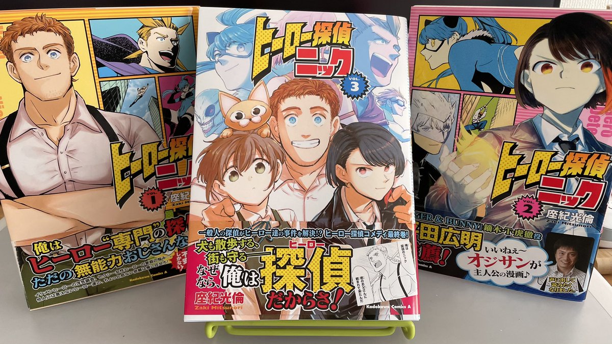 【告知】『ヒーロー探偵ニック』3巻本日発売!! 何の能力も持たない一般人のおじさんがヒーロー達の依頼を叶えたり叶えなかったりする漫画です。 これにて完結!(とゆーか打ち切り!) ありがとうございました〜🦸♂️🦸♀️ amazon.co.jp/dp/4041119278/…