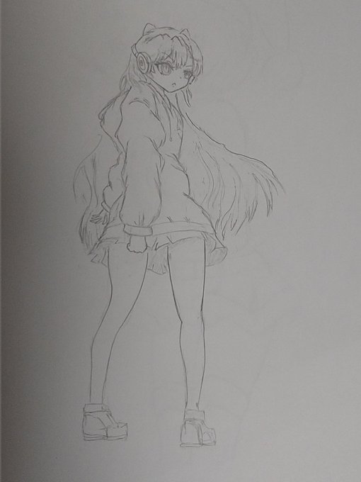 4 32 #女子 #イラスト #ツインテール #鉛筆 なんか、後ろに傾いていますが、一応下から煽り目線のつもりです… 22/10/23 09:40
